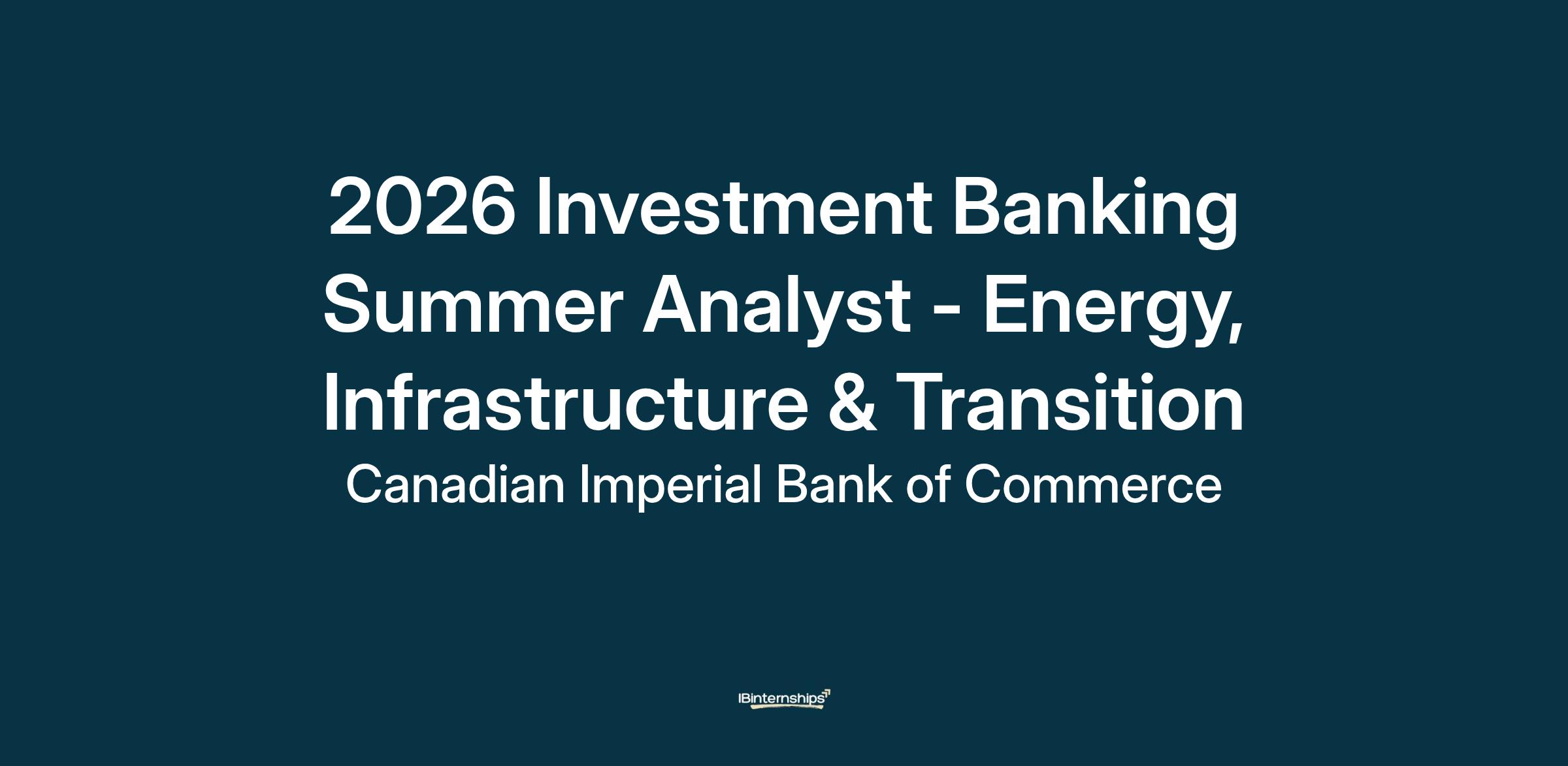 The EIT Summer Analyst will work with Managing Directors, Executive Directors, Directors, Associates and Analysts to expand the presence of CIBC Capital Markets in our focus sectors. The Summer Analyst will be involved in a high proportion of live transactions, providing financial modeling, analytical, structuring, research, and transaction support to senior professionals in the group and assisting with the execution of transactions. The Summer Analyst will be trained to maintain an awareness of our clients, industry, regulatory issues and relevant economic/political trends.