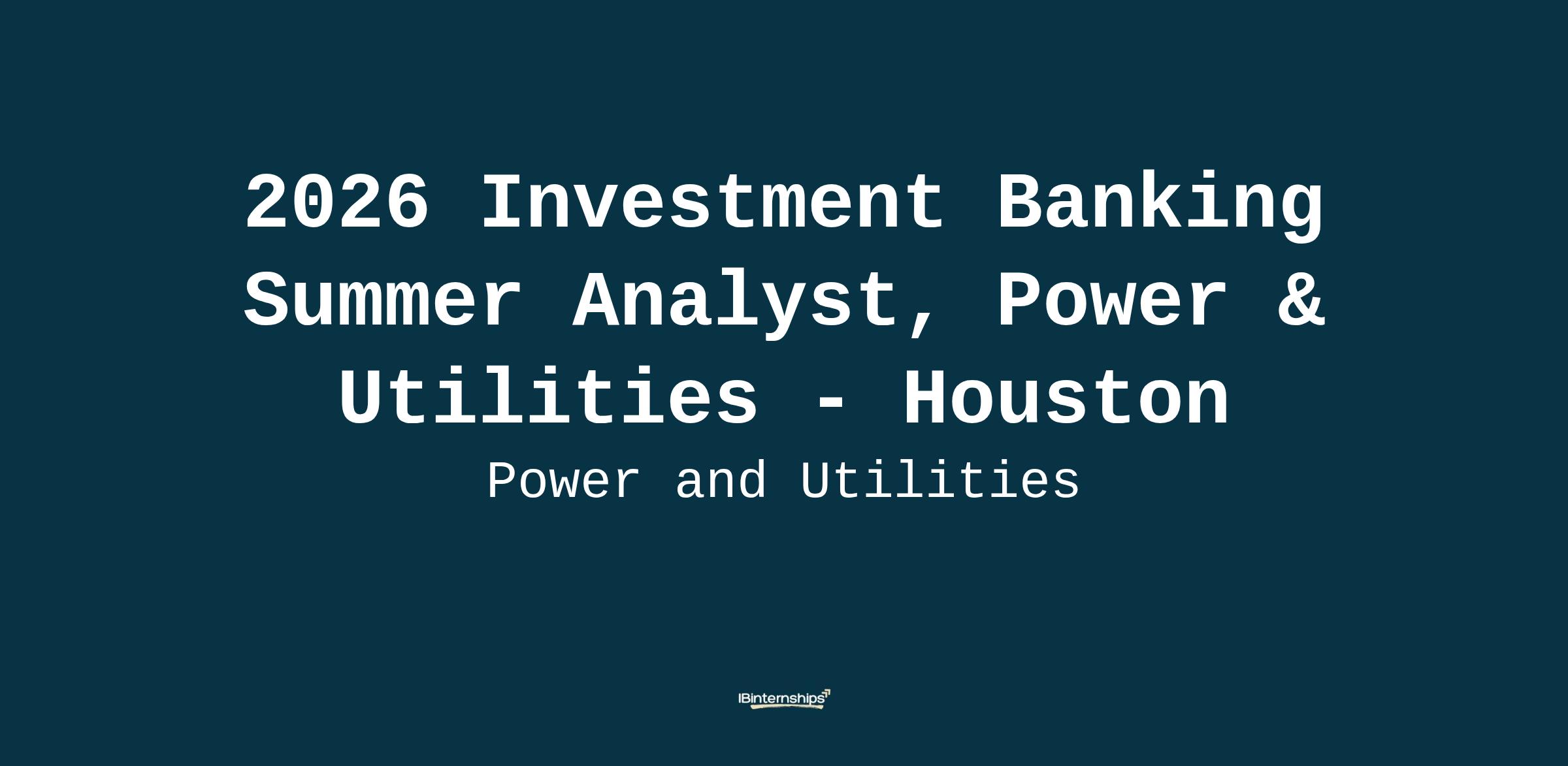 2026 Investment Banking Summer Analyst, Power & Utilities - Houston