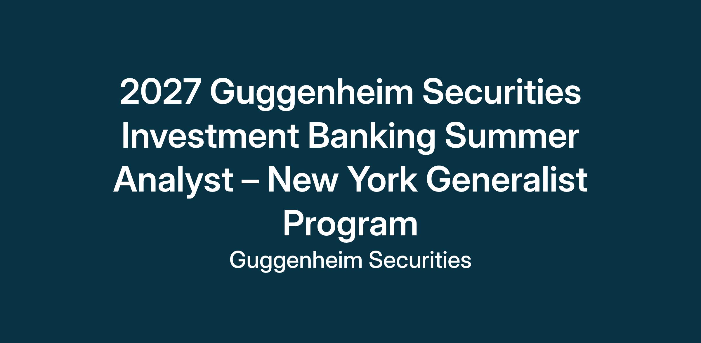 For more information, please visit GuggenheimSecurities.com, follow us on LinkedIn or contact us at GSIBCampusRecruiting@guggenheimpartners.com or 212.518.9200.