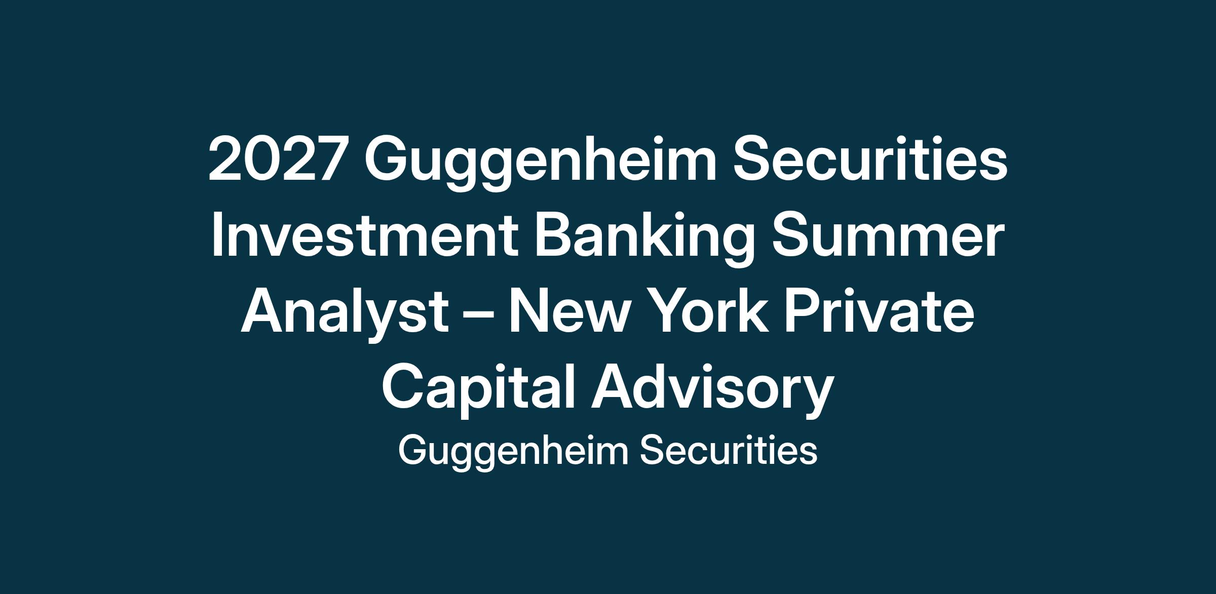 For more information, please visit GuggenheimSecurities.com, follow us on LinkedIn or contact us at GSIBCampusRecruiting@guggenheimpartners.com or 212.518.9200.