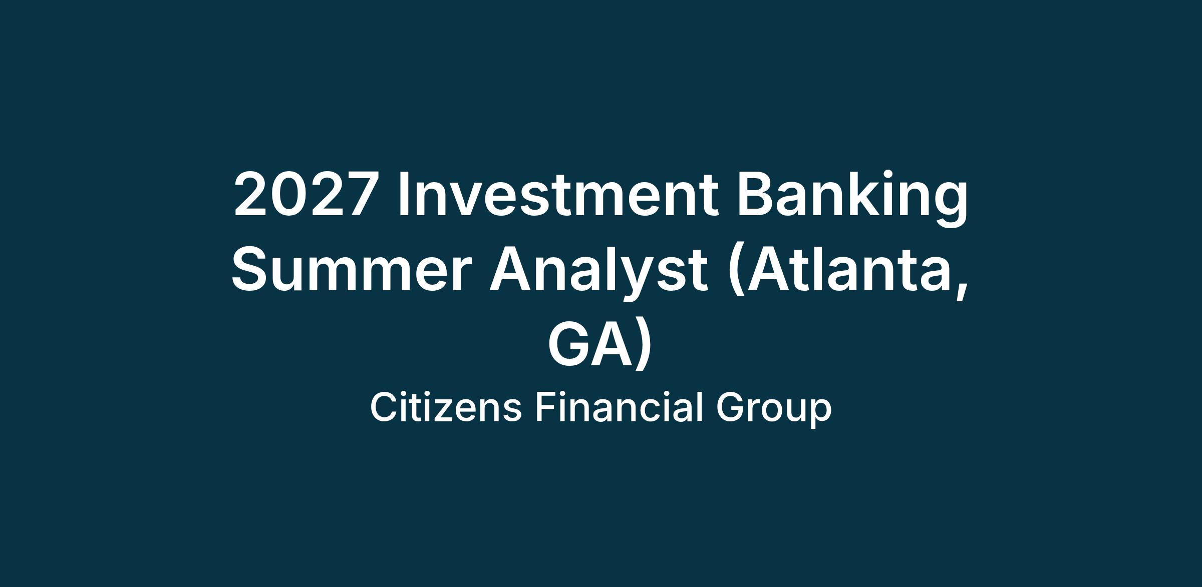 Program Overview Citizens’ Capital Markets & Advisory Summer Analyst Program offers motivated undergraduate students the opportunity to gain hands-on experience within a leading U.S. middle-market franchise, combining the resources of a large financial institution with a relationship-driven, team-oriented culture. CM&A is deeply integrated across Industry Coverage, Leveraged Capital Markets, and Mergers & Acquisitions, providing interns with broad exposure to live transactions, formal training, structured mentorship, and senior leadership. Throughout the 10-week internship, Summer Analysts are assigned to active and prospective engagement teams across multiple industries, quickly gaining meaningful responsibility and developing core investment banking skills. CM&A’s Summer Analyst program is the primary pipeline for full-time Analyst roles within the investment bank.
