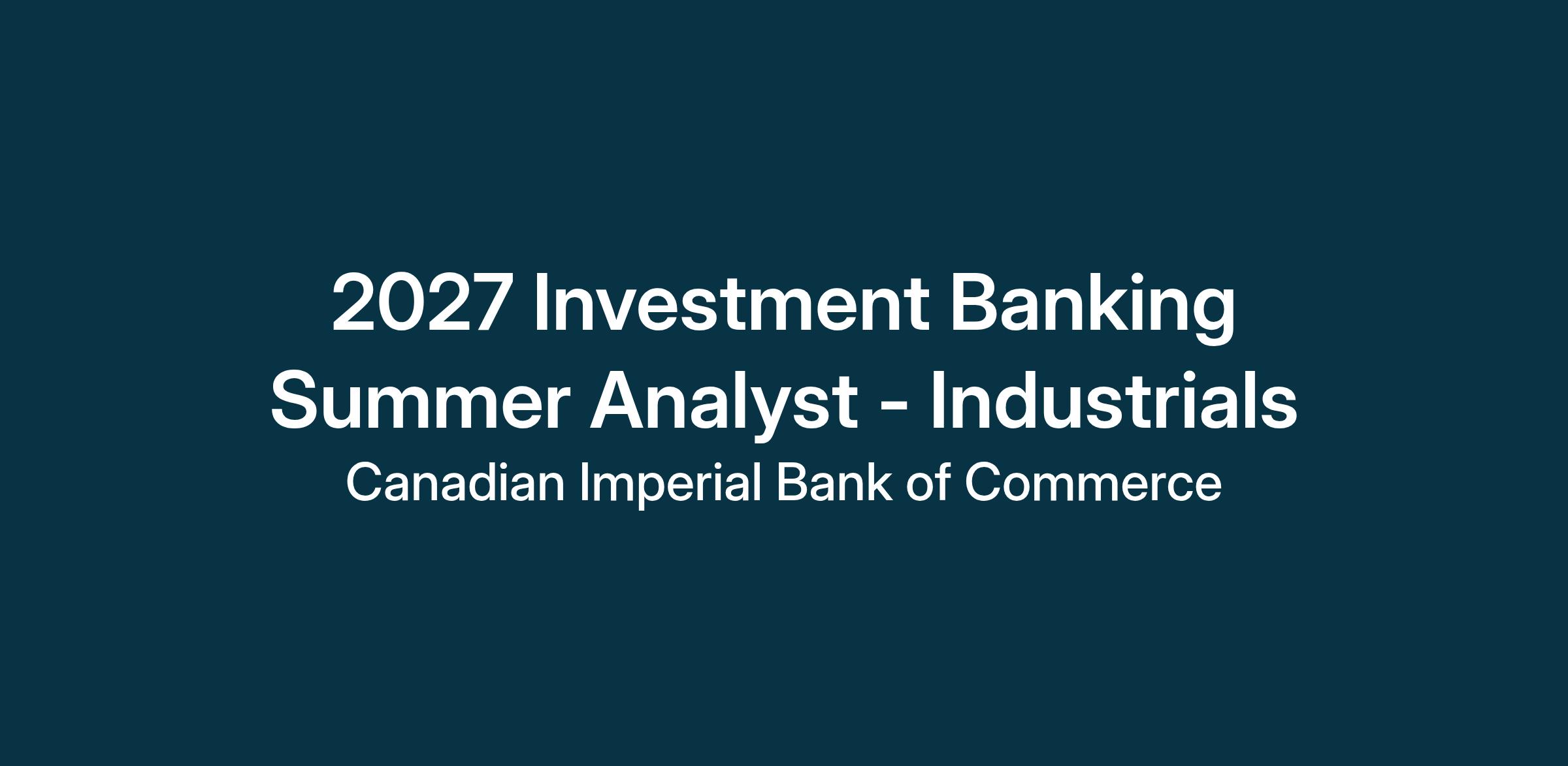 Location: New York, NY. Please note all employees must reside within the United States. All CIBC student positions require you to be based in New York for the duration of the term