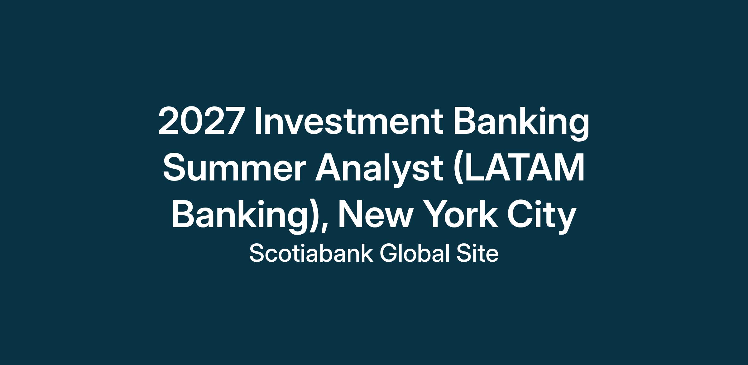 2027 Investment Banking Summer Analyst ( LATAM Banking), New York City