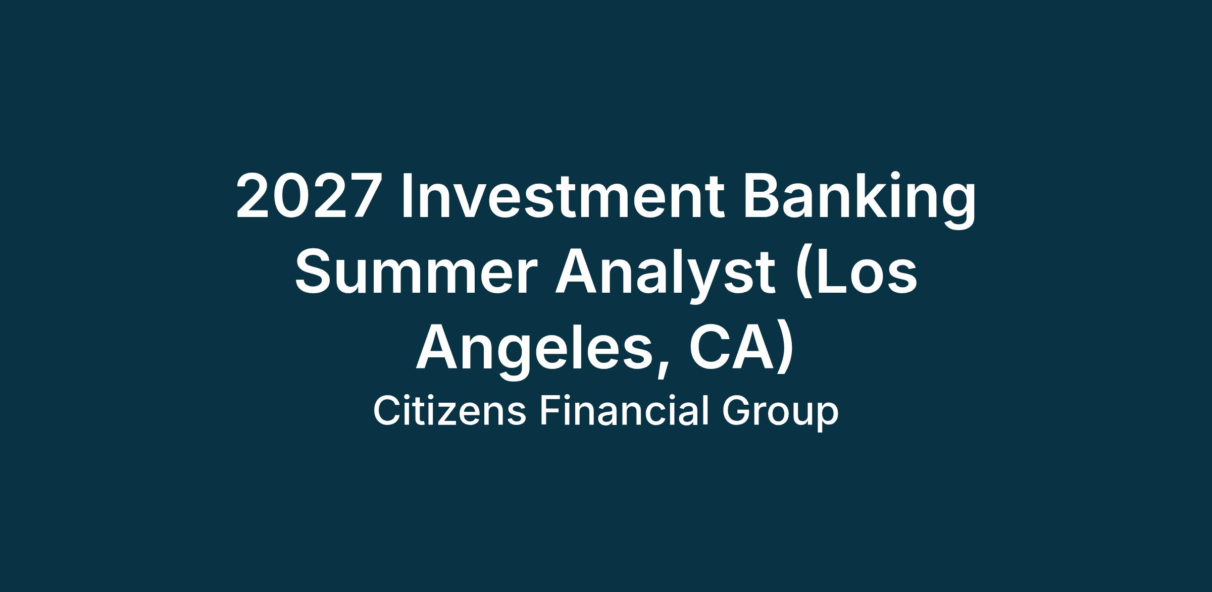 2027 Investment Banking Summer Analyst (Los Angeles, CA)