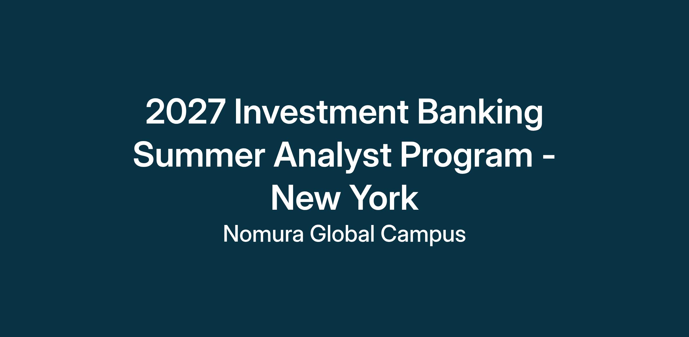 Nomura Investment Banking is seeking intellectually curious and driven students to join as Summer Analysts. The Summer Analyst Program runs for ten weeks, with a one-week intensive training