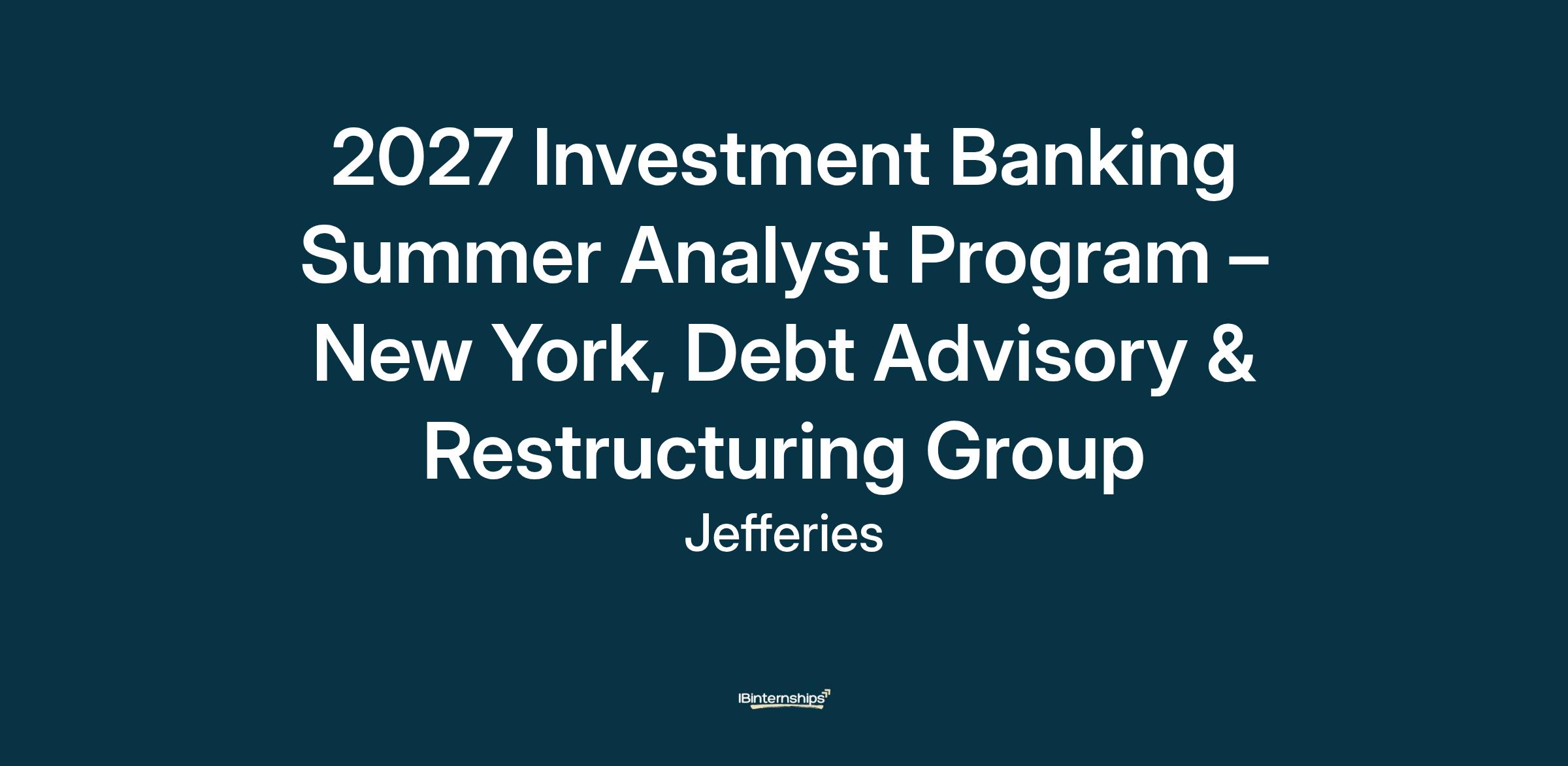 Jefferies Debt Advisory & Restructuring Group is one of the leading franchises providing capital structure advisory and capital markets solutions to companies, creditors, financial sponsors, and other stakeholders through a wide variety of transactions including transitional and distressed debt / equity financings, liability management (e.g., exchange offers), recapitalizations, in- and out-of-court restructurings, and special situations M&A. The team of over 30 professionals regularly partners with industry coverage teams across all verticals, including Technology, Healthcare, Consumer and Retail, Industrials, Financial Institutions, Energy and Power, and Real Estate, among others. Named as one of 5 investment banking “Power Players” in the field by WSJ, the team has been among the most active on the Street completing 200+ assignments representing over $450 billion in liabilities since 2007.