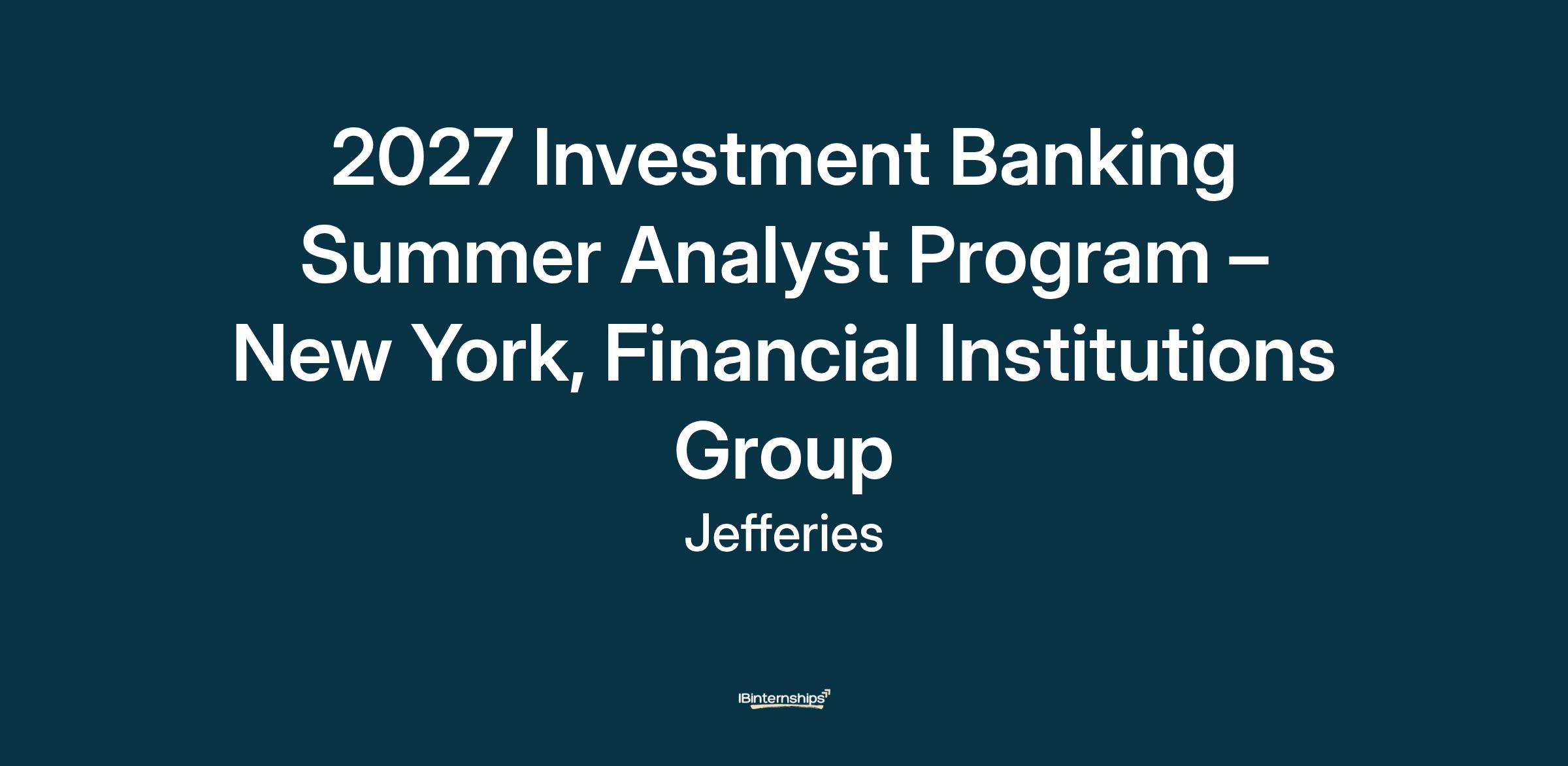 The Financial Institutions Group is actively looking for Summer Analysts in our New York office.