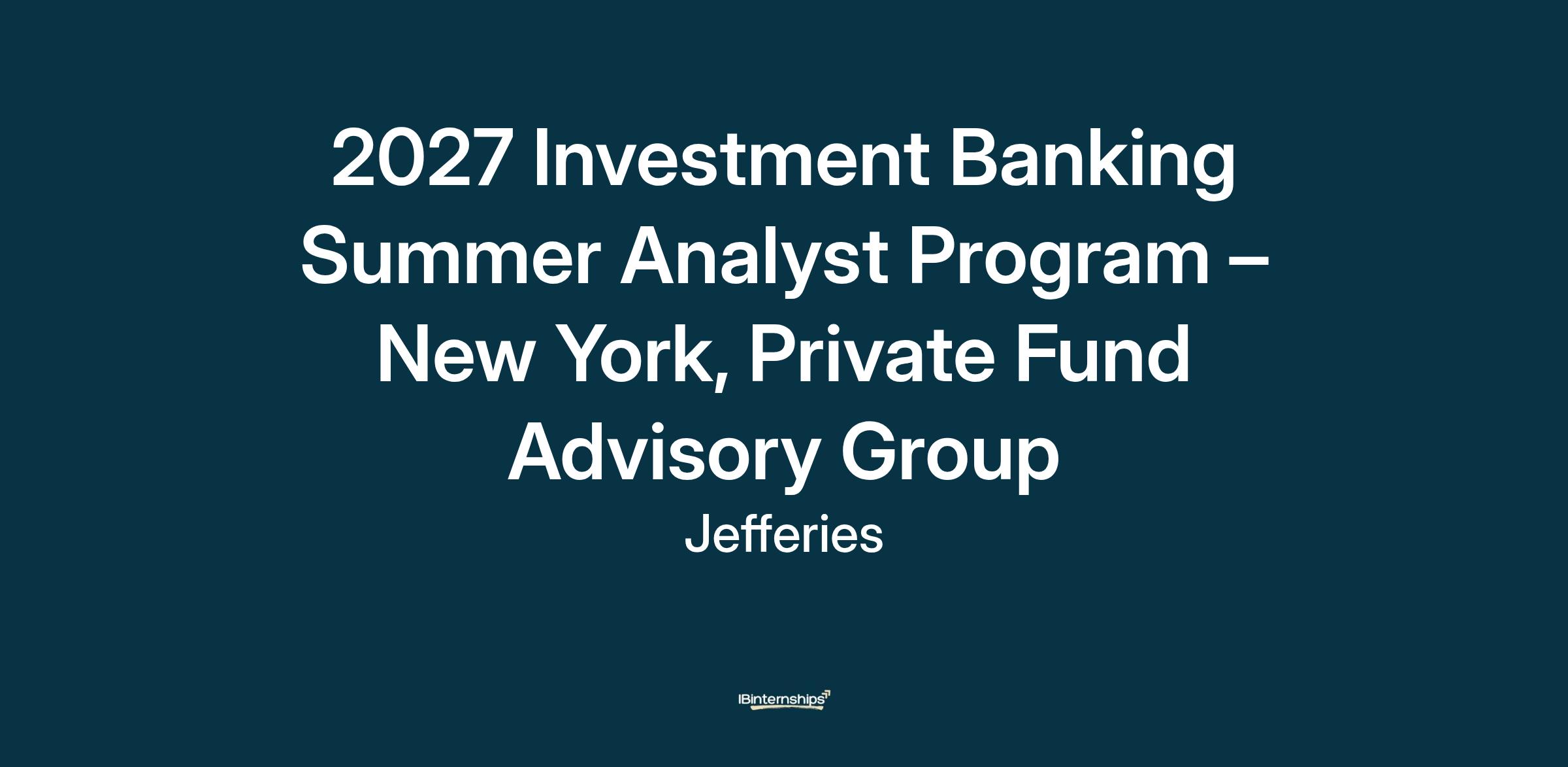 Summer Interns in the Private Fund Group (“PFG”) participate in the broader Jefferies Investment Banking Summer Intern program, which represents a unique opportunity to gain insight into a global, client-focused investment bank and experience an entrepreneurial environment where employees have the opportunity to make an immediate impact and are rewarded for performance. Our Interns are exposed to Jefferies’ full range of top-tier investment banking products and leading industry expertise and work closely with senior bankers on pitches and live deals. Our lean deal team structure will not only provide you with unparalleled hands-on experience, it will help you develop lasting personal and professional relationships with peers and senior bankers that will serve as the foundation for a successful career.