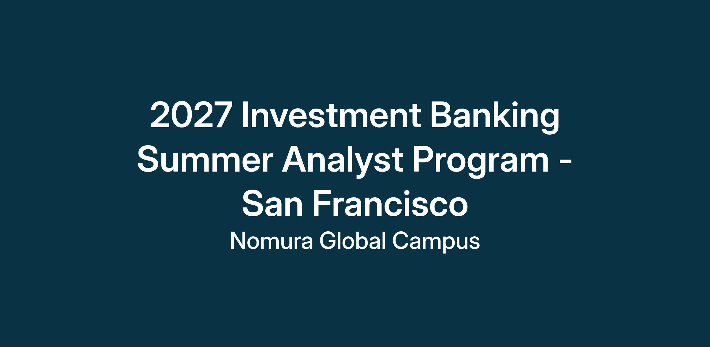 Nomura Investment Banking is seeking intellectually curious and driven students to join as Summer Analysts. The Summer Analyst Program runs for ten weeks, with a one-week intensive training