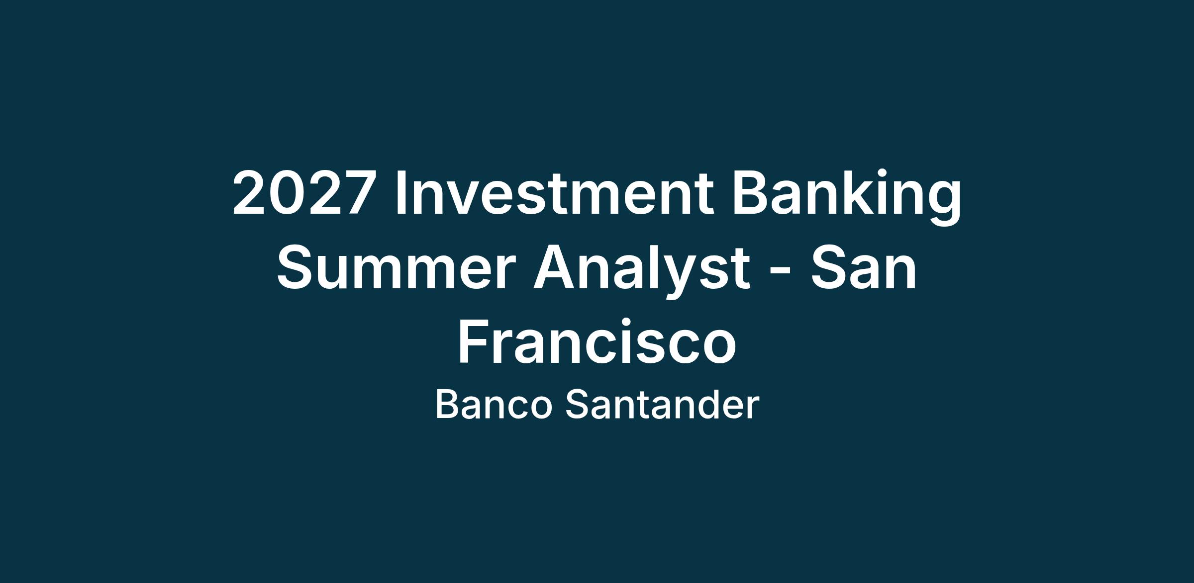 The 2027 Investment Banking Summer Analyst Program is for undergraduate students in a four-year program who have an anticipated graduation date of May/June 2028. Based in San Francisco (CA), you will become part of an international business working with teams across different geographies.
