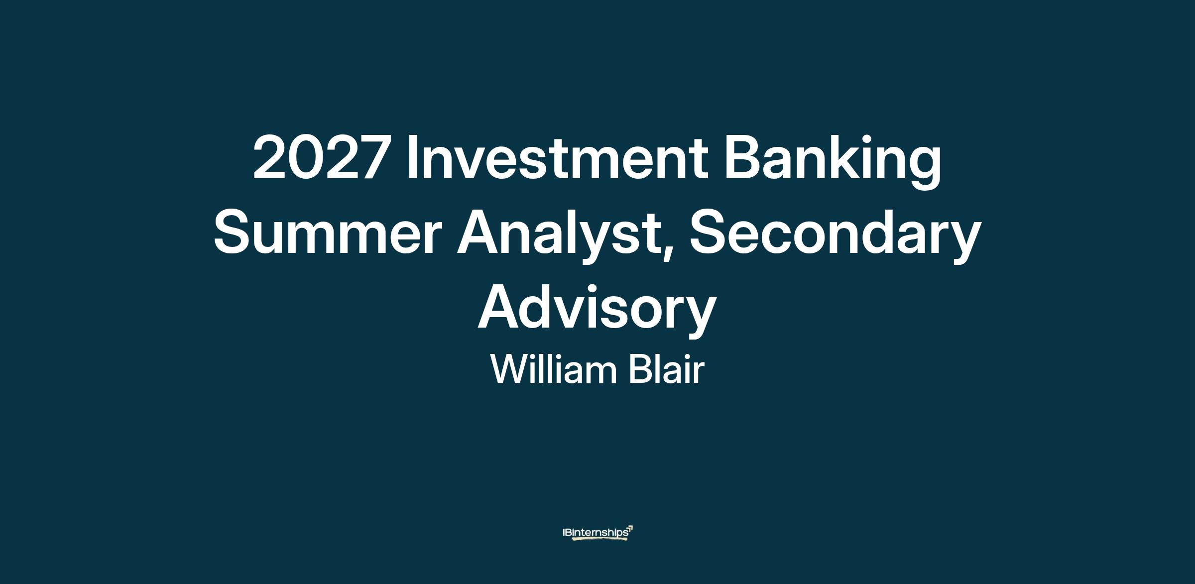 We know you have choices on how you spend your summer but encourage you to apply for William Blair’s 2027 Investment Banking Secondary Advisory Summer Analyst Program. Take the opportunity to build on the fundamentals of your academic background, gain practical knowledge to help prepare you for your next steps and be part of an organization that fosters innovation and invests in our most important asset, our people.