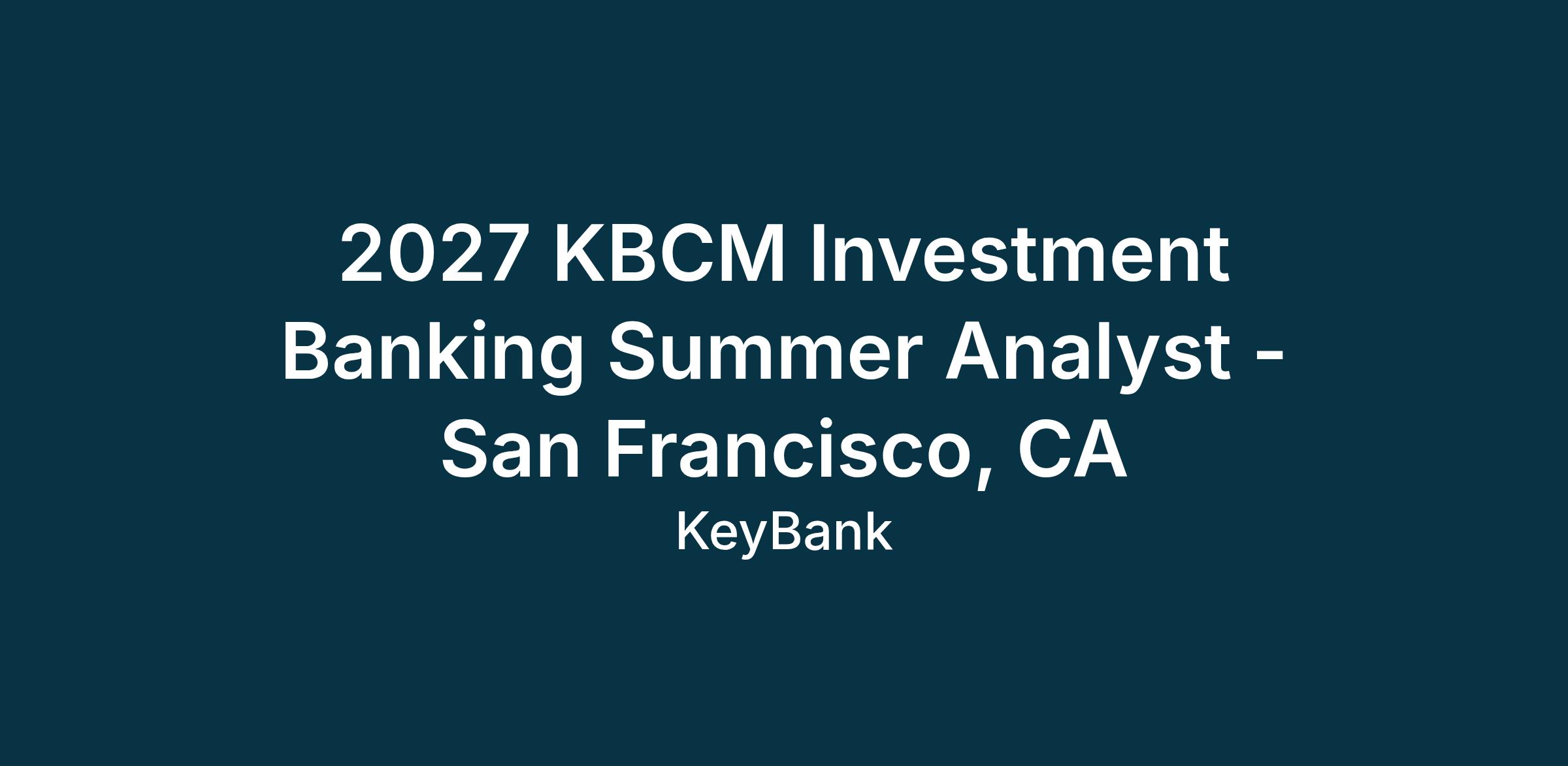 KBCM provides its Summer Analysts unprecedented professional development opportunities through a mix of on-the-job training and structured, hands-on experience. The program is designed to provide broad experience across all stages of transaction executions, from pitch phase through closing. Because our Summer Analyst Program is a direct pipeline for our full-time Analyst positions, it offers exceptional potential for you to return to KBCM upon graduation to start your capital markets career.
