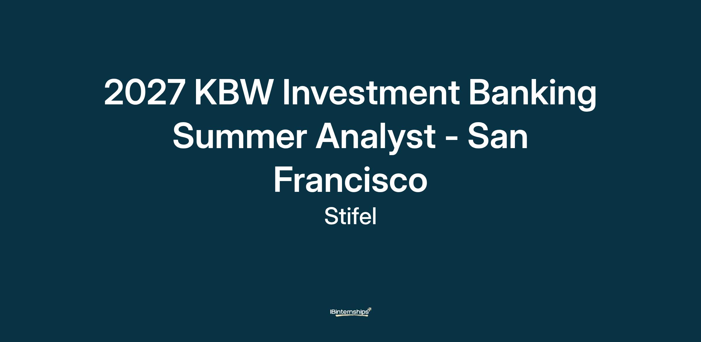 2027 KBW Investment Banking Summer Analyst - San Francisco
