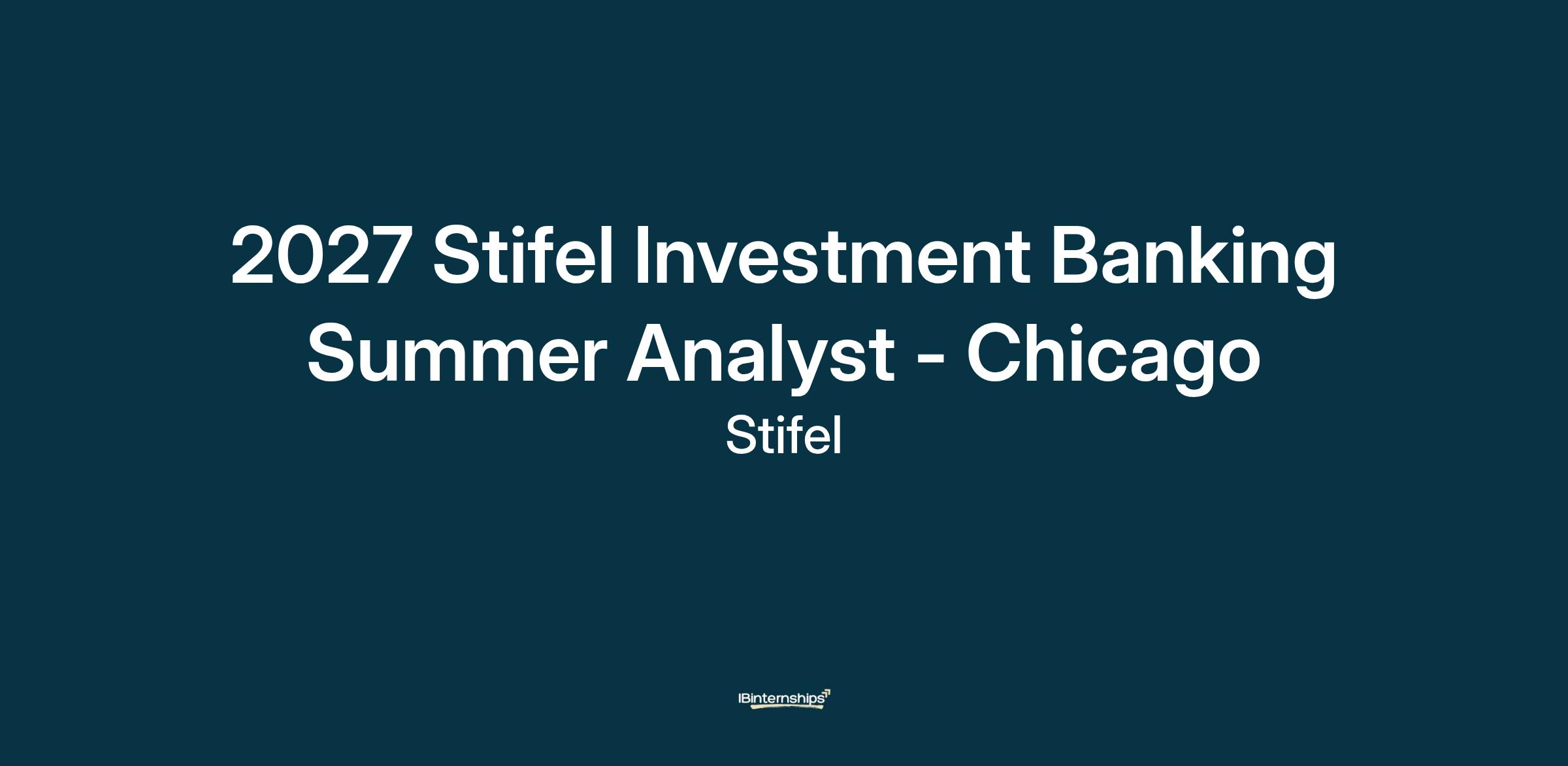 2027 Stifel Investment Banking Summer Analyst - Chicago
