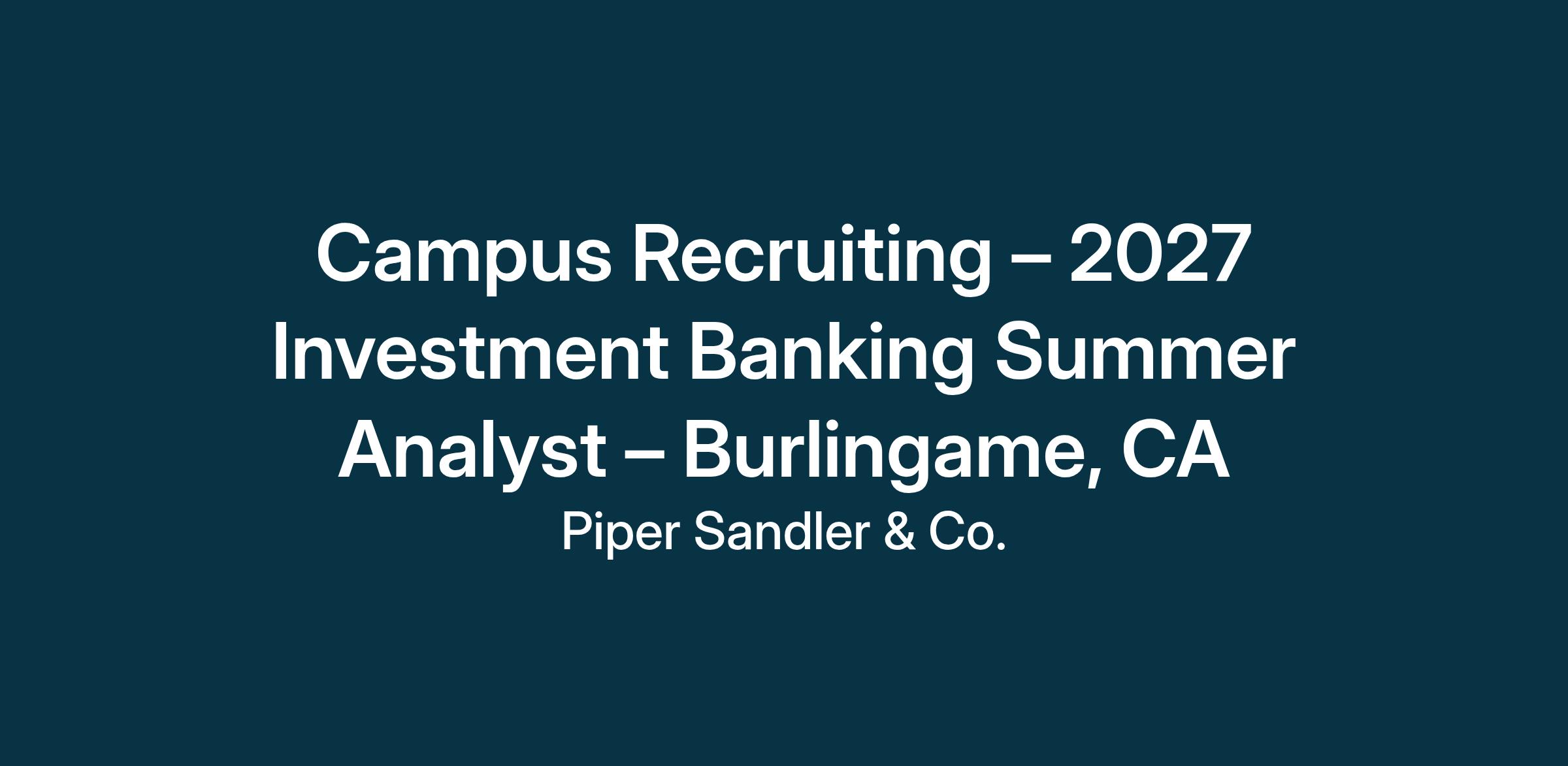 Piper Sandler is currently seeking undergraduate students for our 2027 Investment Banking Summer Analyst Internship Program. Summer Analysts generally work 10 weeks within an industry or product group in Investment Banking and have the opportunity to learn financial modeling and basic analysis of companies and industries, as well as gain an understanding of the dynamics of the capital markets.