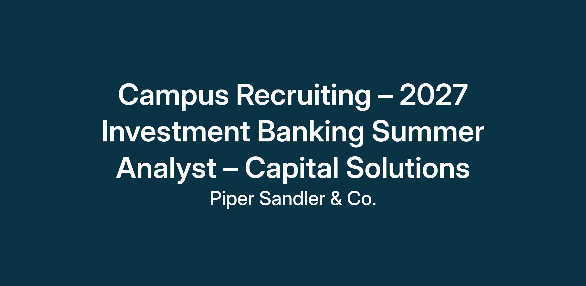 Piper Sandler is currently seeking undergraduate students for our 2027 Investment Banking Summer Analyst Internship Program. Summer Analysts generally work 10 weeks within an industry or product group in Investment Banking and have the opportunity to learn financial modeling and basic analysis of companies and industries, as well as gain an understanding of the dynamics of the capital markets.