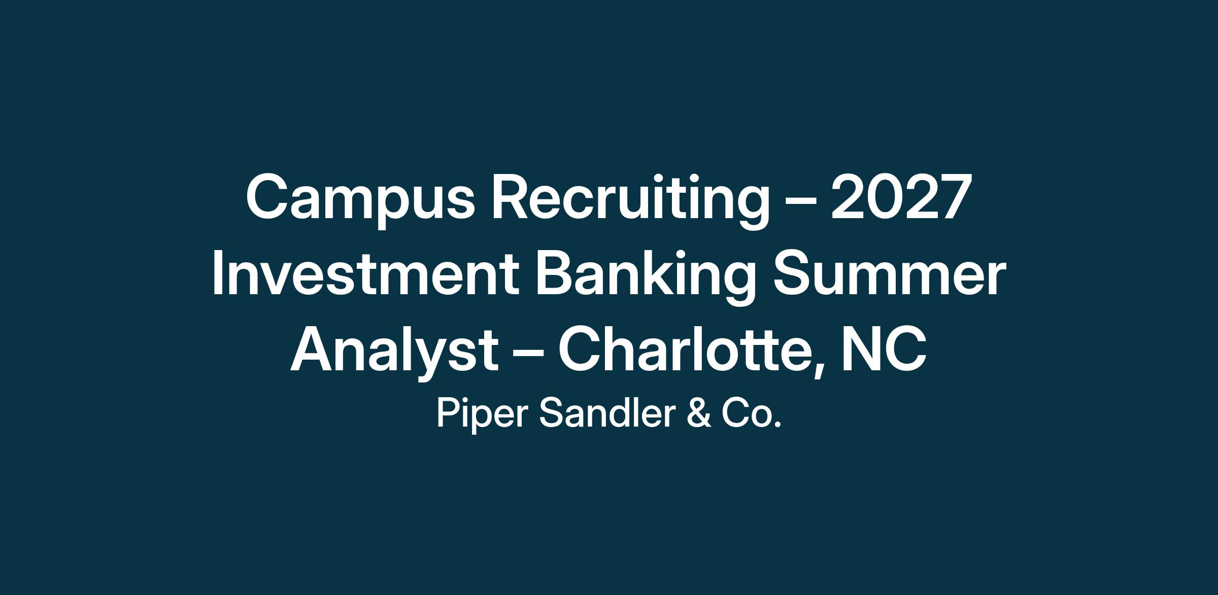 Piper Sandler is currently seeking undergraduate students for our 2027 Investment Banking Summer Analyst Internship Program. Summer Analysts generally work 10 weeks within an industry or product group in Investment Banking and have the opportunity to learn financial modeling and basic analysis of companies and industries, as well as gain an understanding of the dynamics of the capital markets.