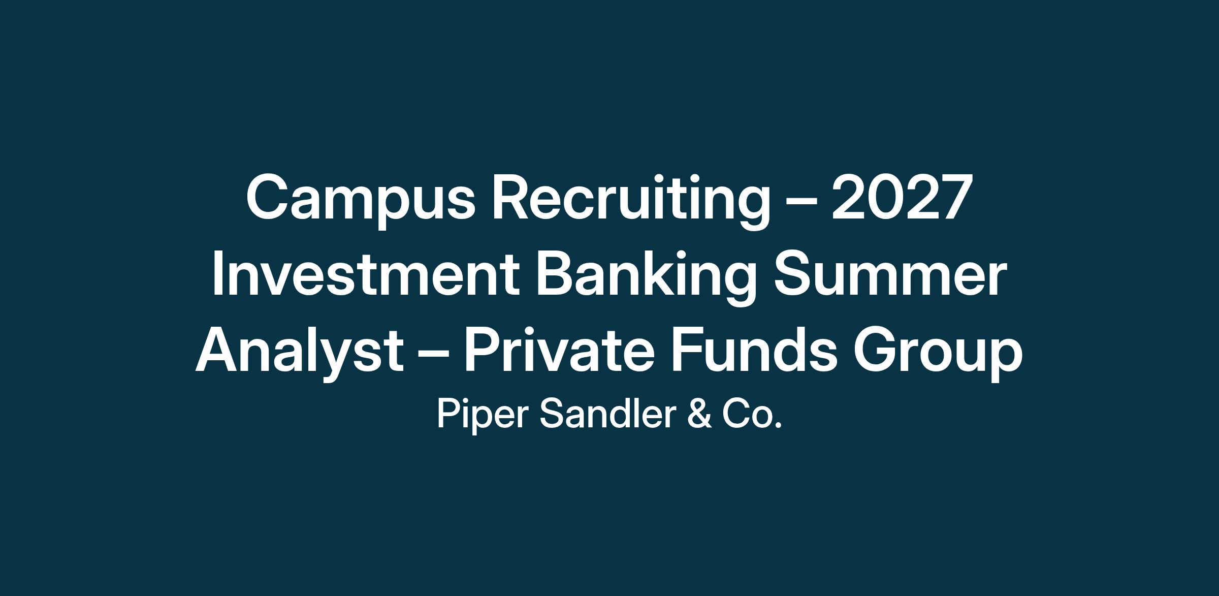 Piper Sandler is currently seeking undergraduate students for our 2027 Investment Banking Summer Analyst Internship Program. Summer Analysts generally work 10 weeks within an industry or product group in Investment Banking and have the opportunity to learn financial modeling and basic analysis of companies and industries, as well as gain an understanding of the dynamics of the capital markets.