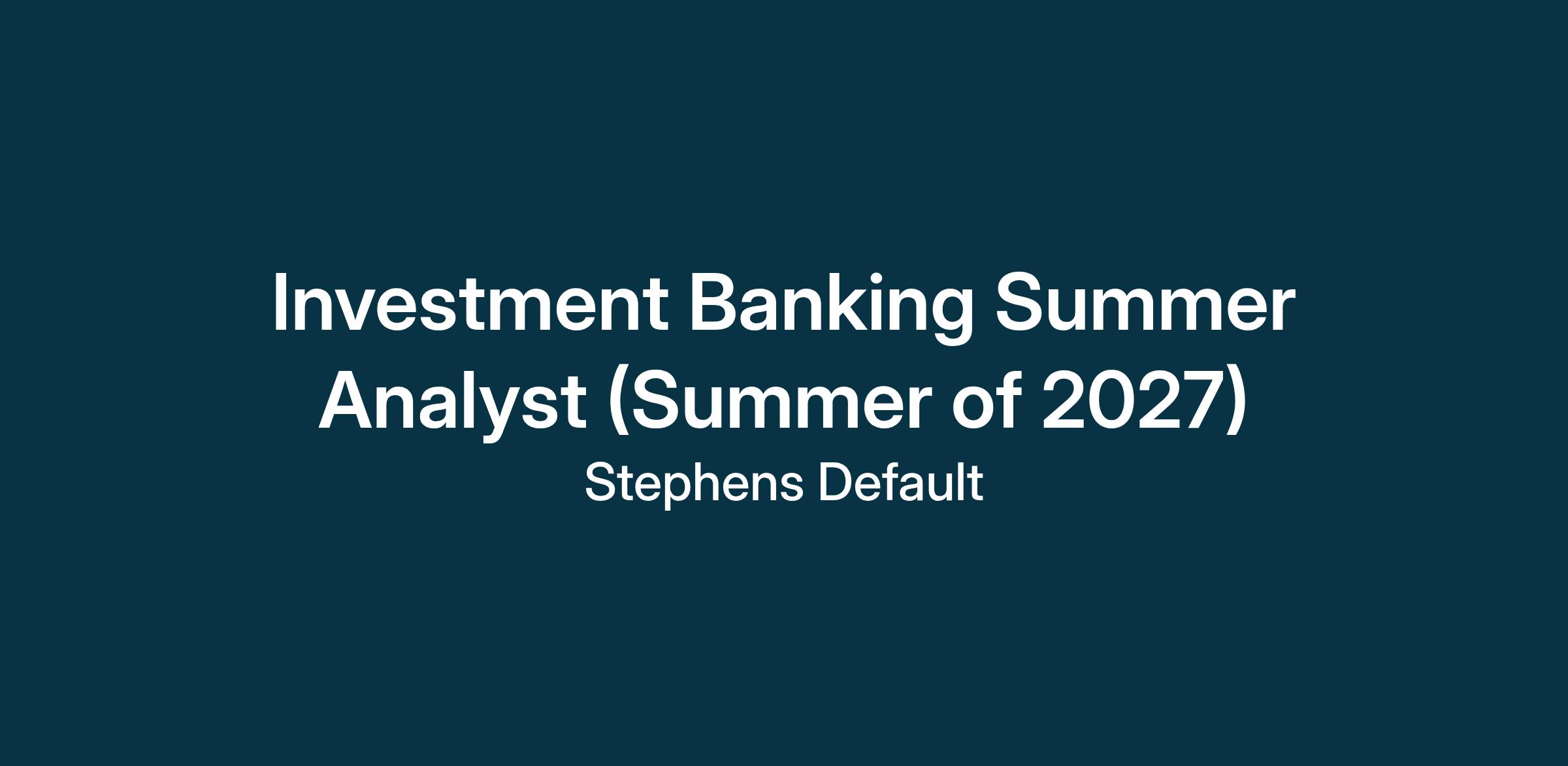 Title: Investment Banking Summer Analyst (Summer 2027)